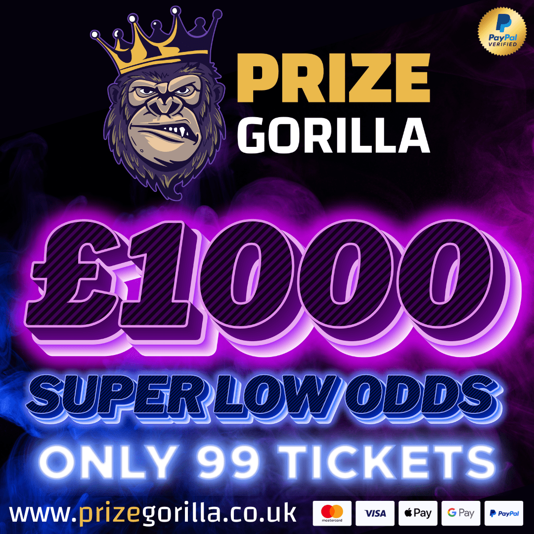 The live draw will take place on the Prize Gorilla Facebook page using Google’s random number generator to select the winning ticket number from all Entrants.