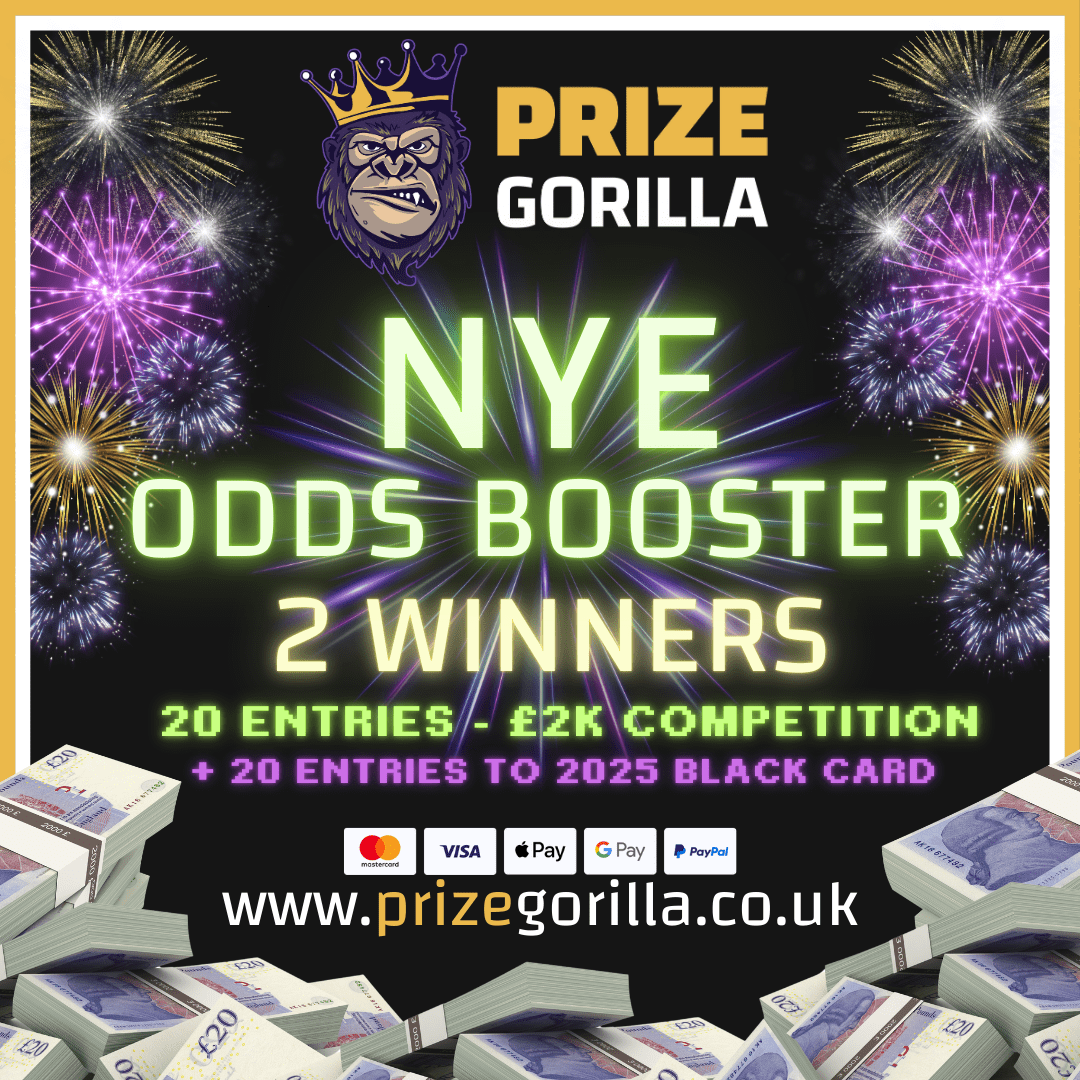 * 2 Winners will each receive x20 Entries into the NYE £2K Competition + x20 Entries into the NYE 2025 Black Card Competition.