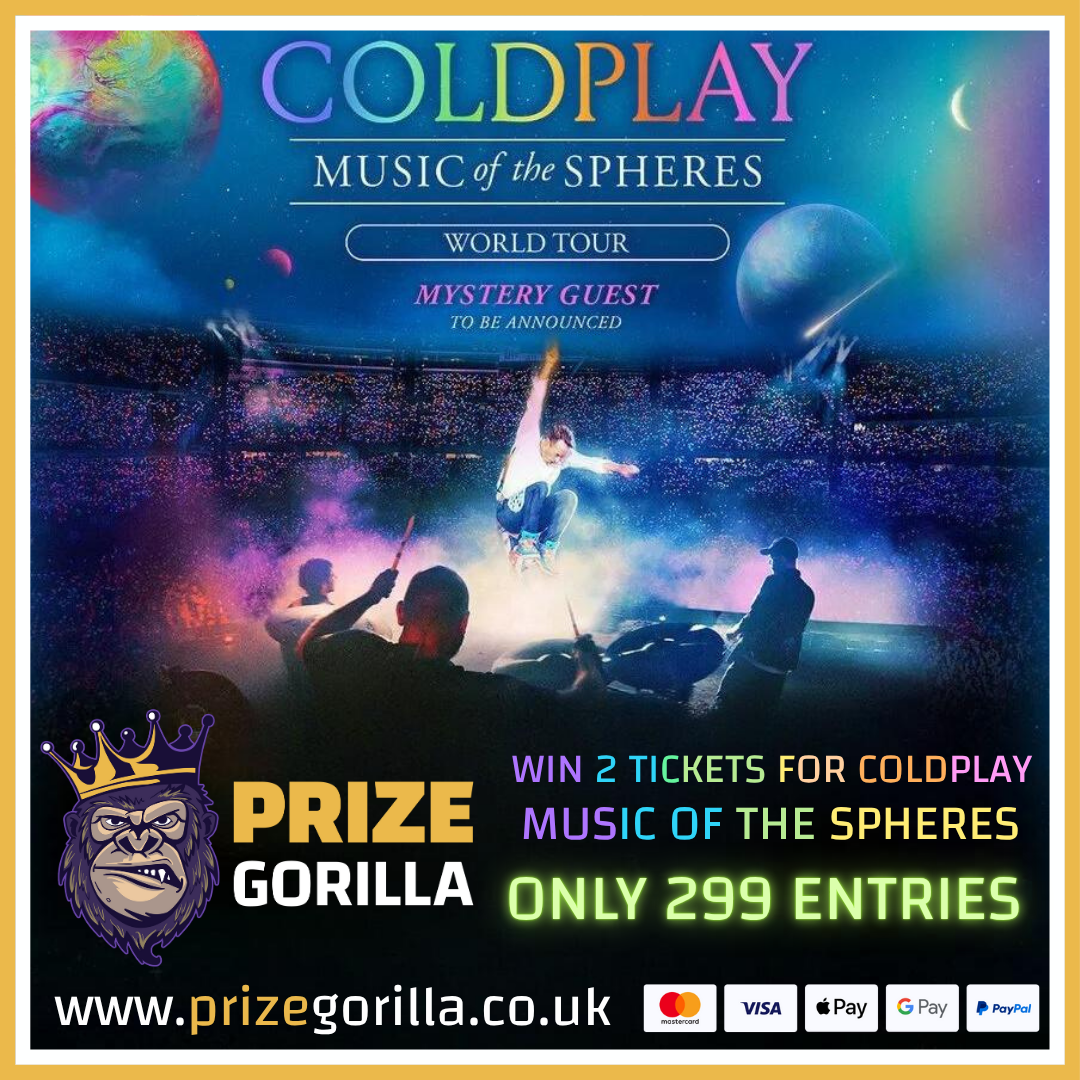 Winner will receive 2 x Seated Tickets to see Coldplay at their upcoming “Music of the Spheres” Tour in Wembley Stadium London 23rd August 2025.