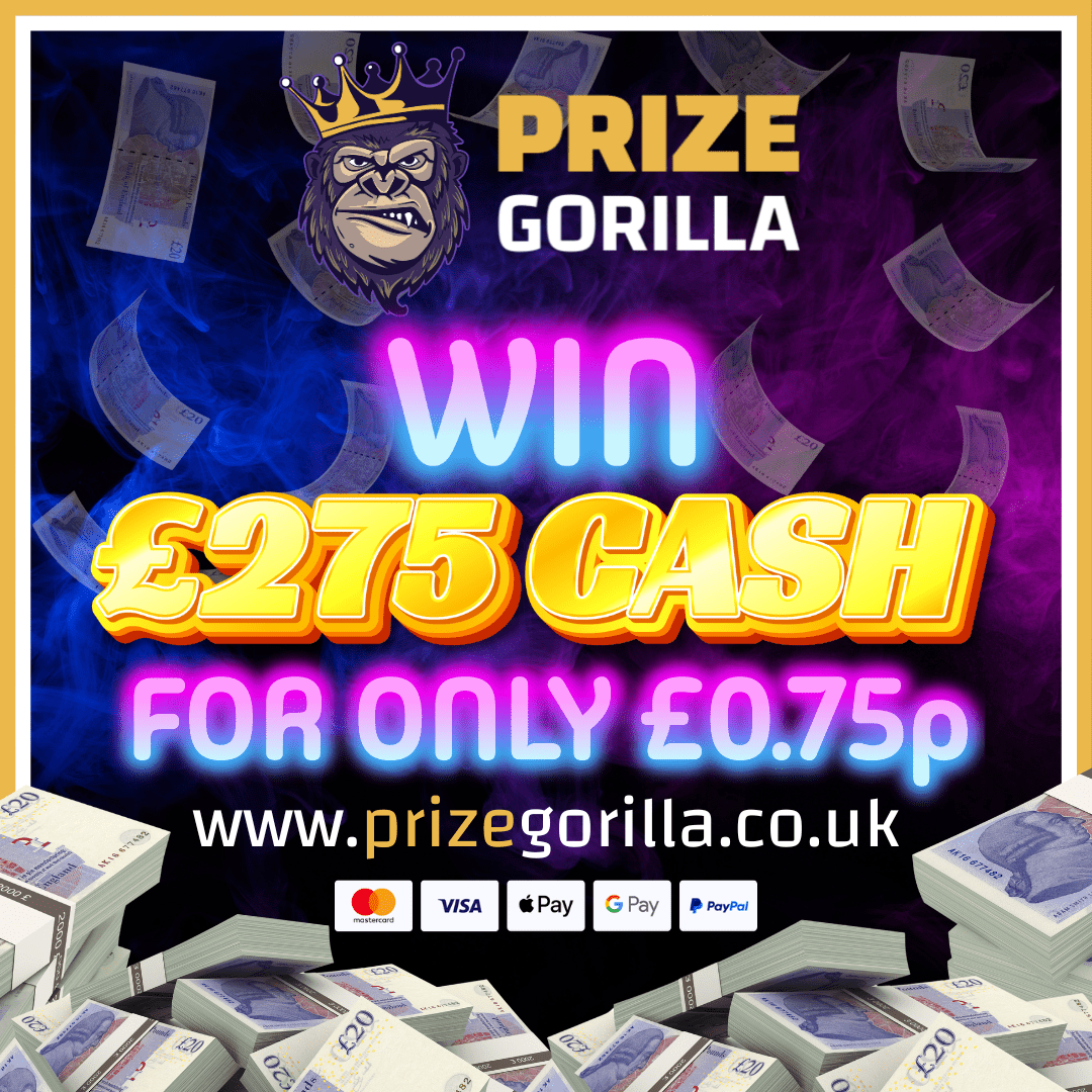 The live draw will take place on the Prize Gorilla Facebook page using Google’s random number generator to select the winning ticket number from all Entrants.