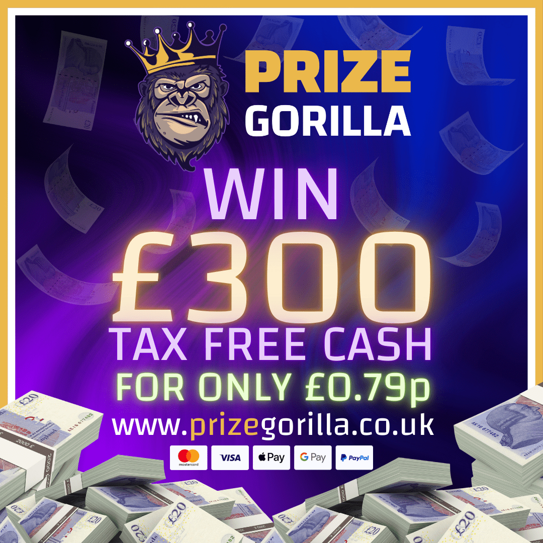 The live draw will take place on the Prize Gorilla Facebook page using Google’s random number generator to select the winning ticket number from all Entrants.